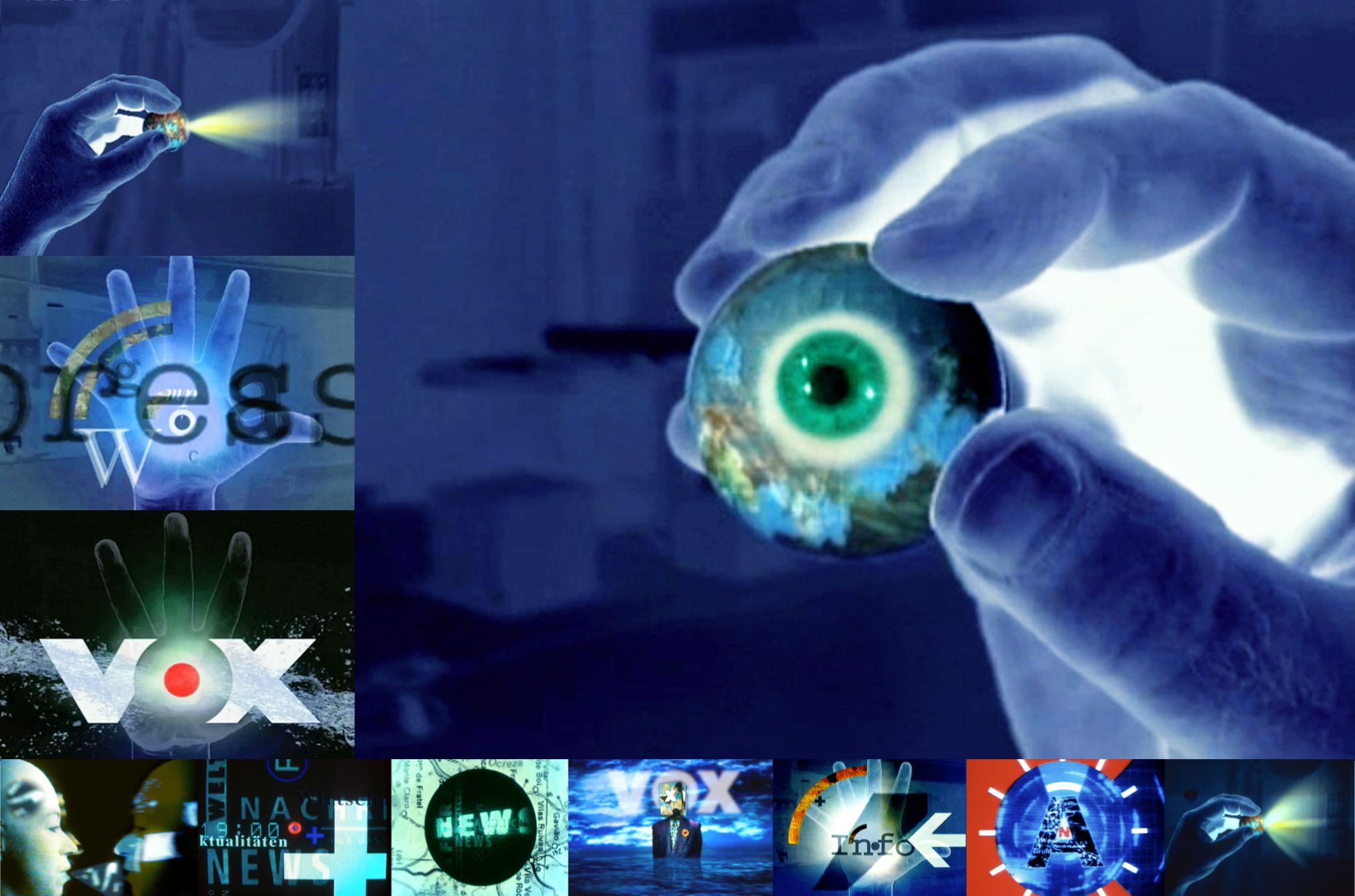 Vox televisie: Ontwerp graphics, diverse leaders en station calls.